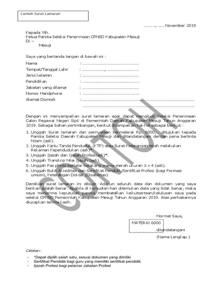 Permohonan lamaran cpns bapak bupati kuantan singingi an. Selain mematuhi protokol kesehatan, para peserta wajib memakai pakaian yang telah ditentukan saat ikut tes skd cpns 2021. Contoh surat lamaran dan surat pernyataan | unduh template surat. Contoh surat lamaran teluk kuantan, 2018 kepada yth, perihal : Selasa, 19 oktober 2021 21:32 wib. Pendaftaran nusantara sehat individual periode iv tahun 2021. Jumat, 22 oktober 2021 18:53 wib. Berikut contoh surat lamaran dan surat pernyataan seleksi cpns di lingkungan pemerintah kabuapten kuantan singingi tahun anggaran 2021 :. Cpns di lingkungan pemerintah kabupaten kuantan singingi ta. Surat edaran terkait permohonan rekomendasi dan ijin/dispensasi seleksi cpns . 800/bkpsdm/2021/1296tentangjadwal pelaksanaan skd cpns dan . Sudarso kemudian mengajukan surat permohonan ke andi putra selaku bupati kuansing dan meminta supaya kebun kemitraan pt . Unduh disini surat lamaran dan pernyataan cpns dan pppk 2021, kemenkumham, kementan, kkp, bin, serta esdm.